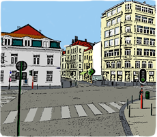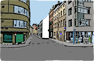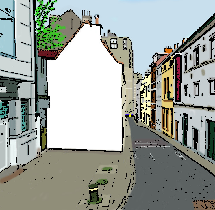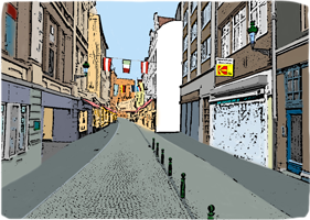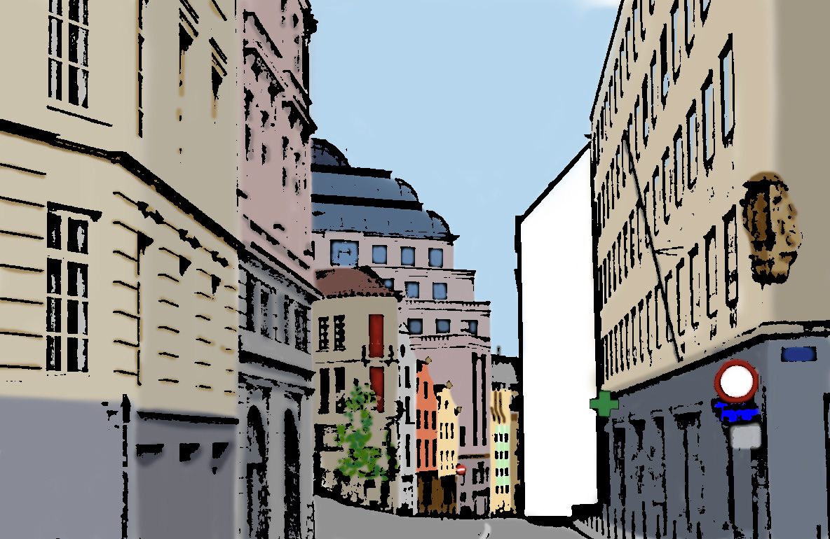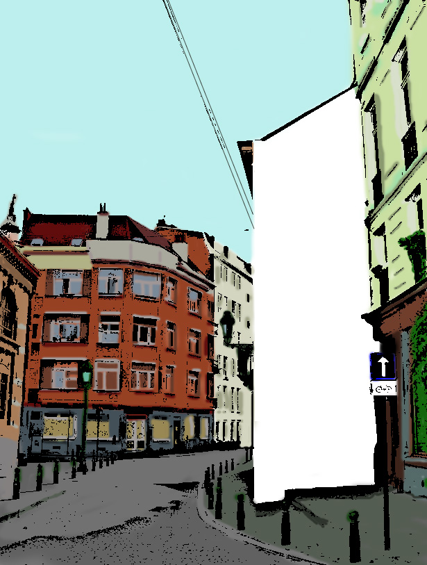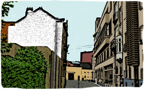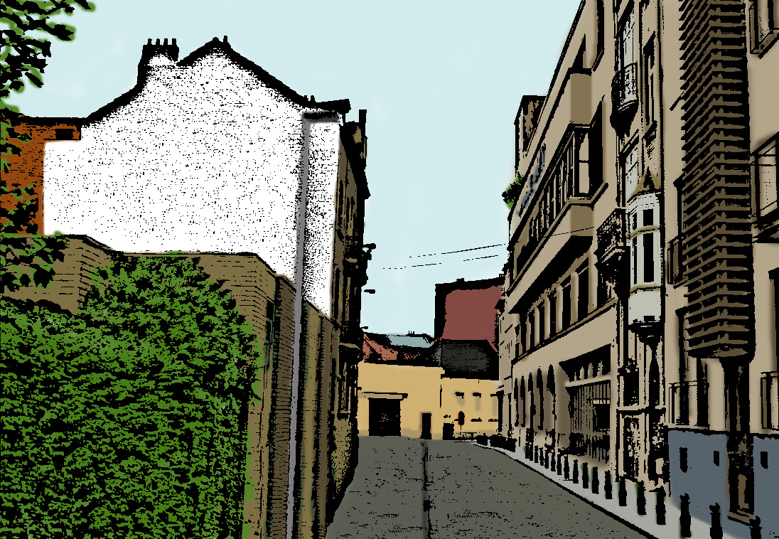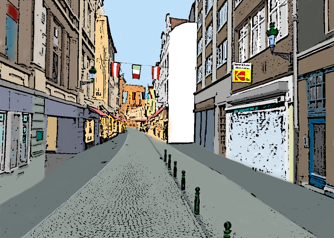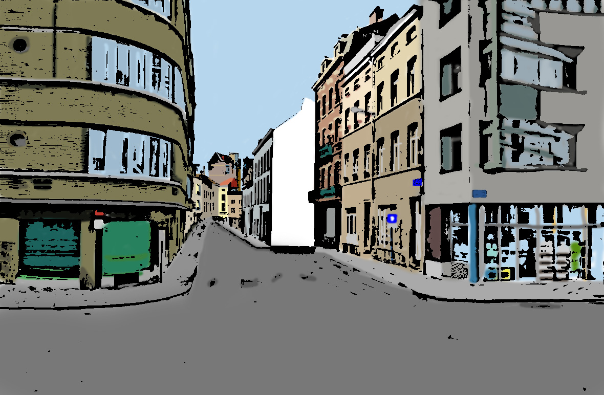 Es gäbe noch weitere Straßenszenen. Aber diese weißen Flecken müssen reichen. Bei einem findet sich hoch oben eine italienische Namensfarbe.
